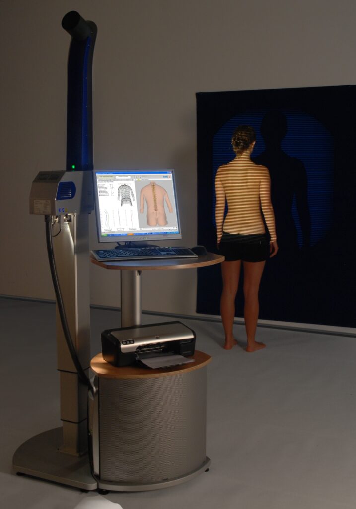 Wir können eine Haltungsanalyse mithilfe des strahlungsfreien 3D-Wirbelsäulenvermessungssystems DIERS FORMETRIC durchführen.